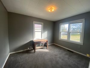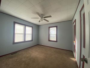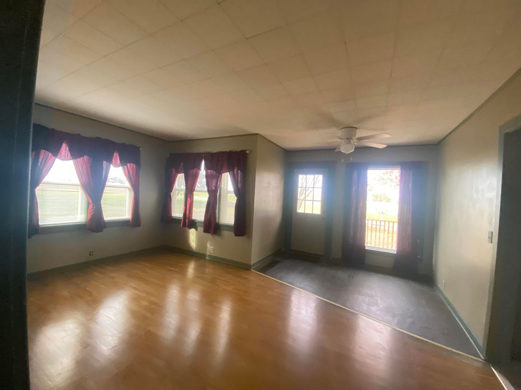 Quiet small town living with a view of the countryside from the front porch. This darling 2-bedroom, 1 bath home has been updated and is ready for you now. All appliances included. Maintenance free outside vinyl and replacement windows. Large lot with spacious backyard. 1 car attached garage. You can't pass this one up for the money. Call today!