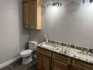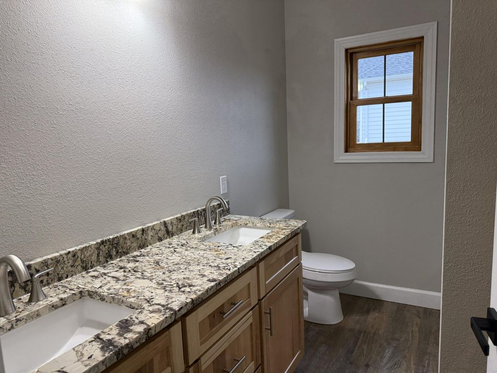 This is a brand new home in a very desirable neighborhood. From the freshly planted sod to the automatic sprinkler system the yard looks fantastic. The home has open living/dining area. The kitchen has custom cabinets with granite countertops and new appliances. The split floor plan allows for privacy. The main bedroom has huge walk in closet and large bath with soaker tub, a walk in shower and a custom double vanity with granite counters. The opposite side has 2 spacious bedrooms and large bath with tub/shower combo. Solid wood doors and trim. Don't miss the chance to look at this home! Call today!