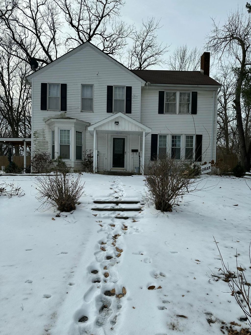 Check out this stately two-story home located within a well established neighborhood. You are within walking distance of historic downtown Marshall. Kitchen is large with ample room for family dinner preparations which can be enjoyed in the adjacent dining room. Living room has fireplace (sellers have never used it). Den/family room has French doors and opens to the living room. Main level laundry area that would make great craft room. Beautiful staircase leads to the second floor. Full bath and three spacious bedrooms on second floor.The backyard is a family's entertainment dream! It is enclosed in a privacy fence and has outdoor lightening. There is a flagstone patio, which is a great place to enjoy morning coffee. Storage sheds have electricity. Trampoline and swing set