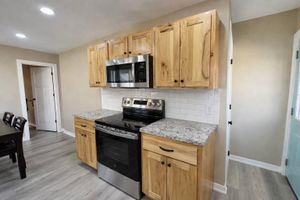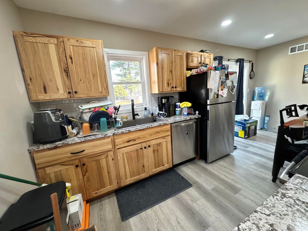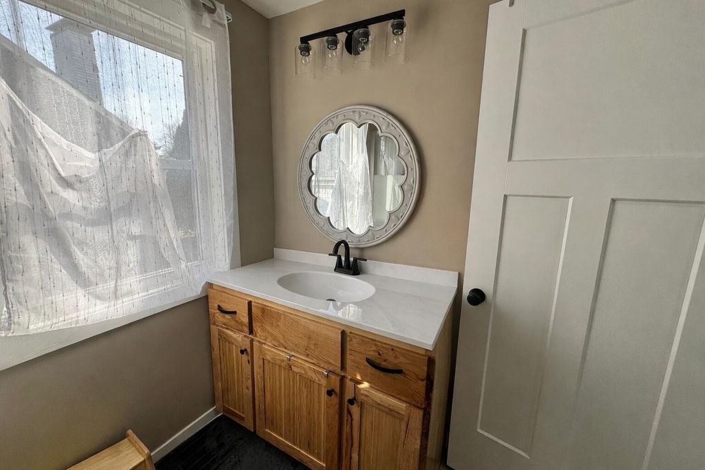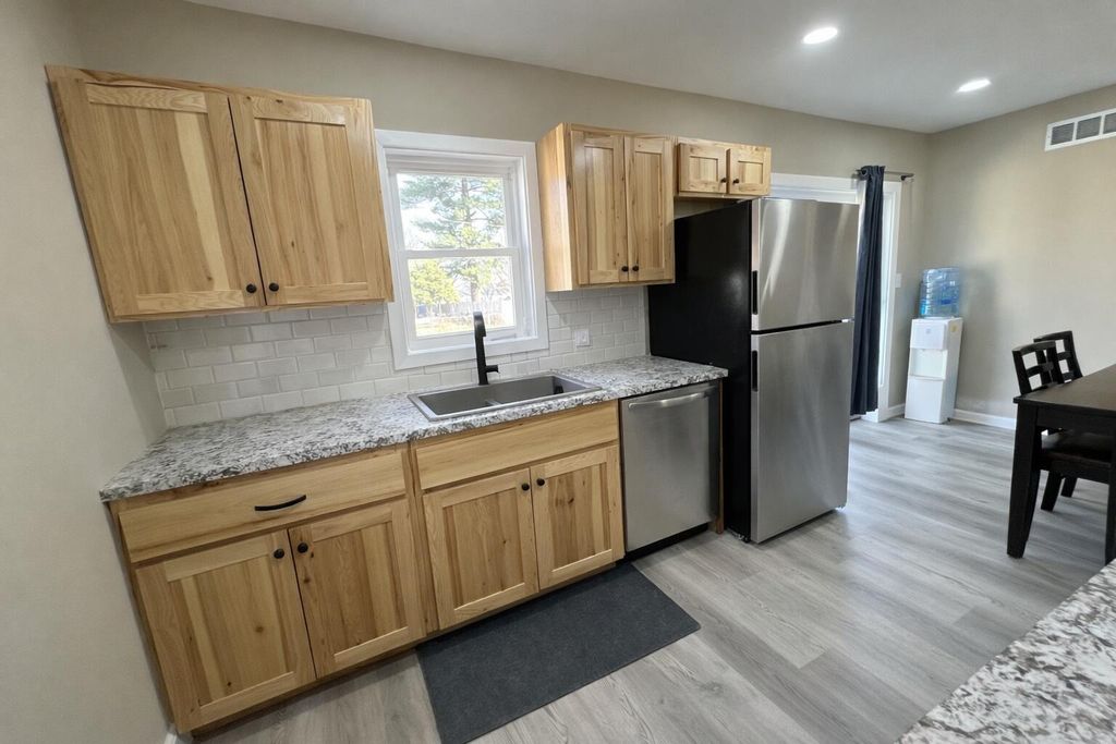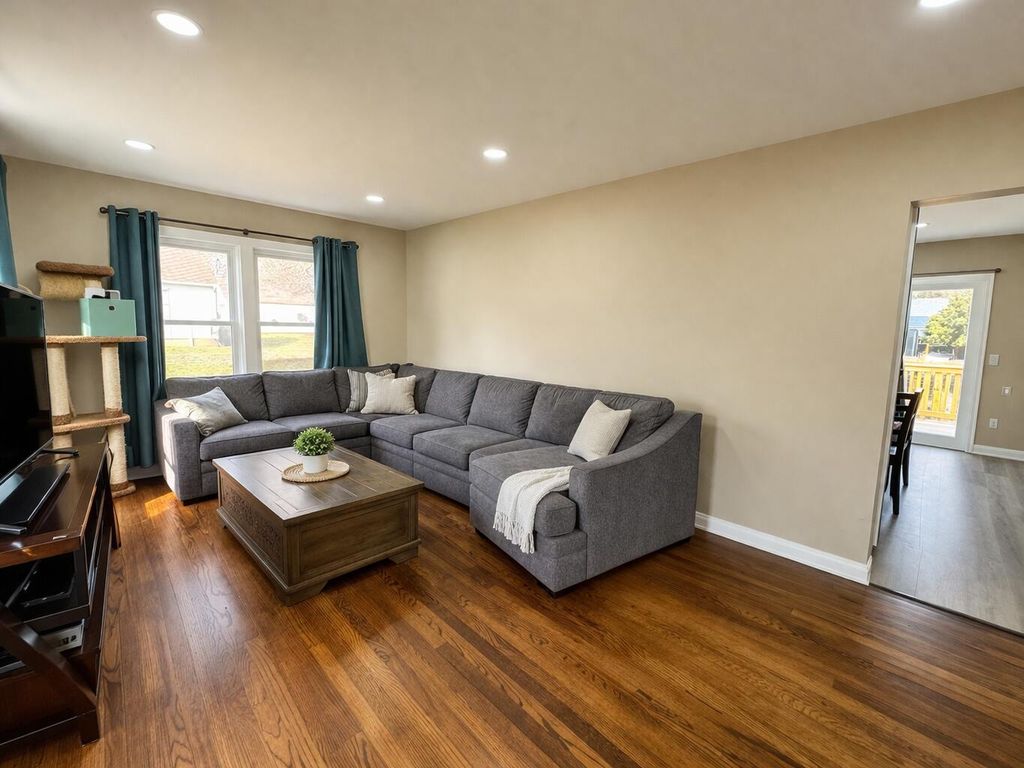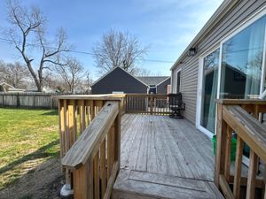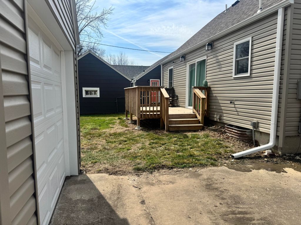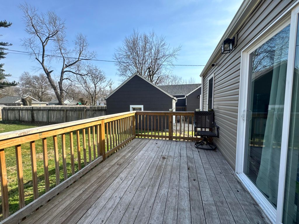 Beautiful 3-bedroom, 2 full bath home situated on a spacious corner lot, 100% move-in ready! This home was completely renovated just two years ago. Updates include: custom kitchen cabinets, refinished hardwood floors, luxury vinyl plank flooring, and fresh paint throughout.updated electrical, plumbing, HVAC system, and sewer line. The kitchen comes fully equipped with all appliances included, along with a washer and dryer for added convenience.The property also offers a full, dry basement with excellent potential for additional living space. Outside, you'll find a large yard with alley access, a newer deck perfect for entertaining, and a garage with electricity providing plenty of storage and workspace. Don't miss out on this one!!