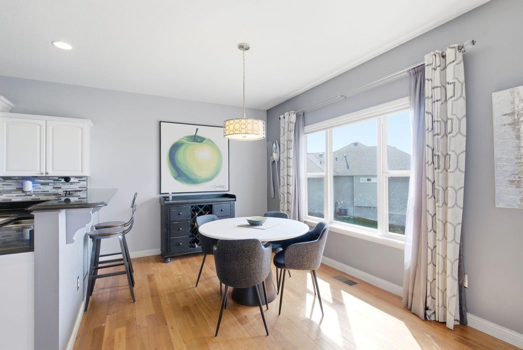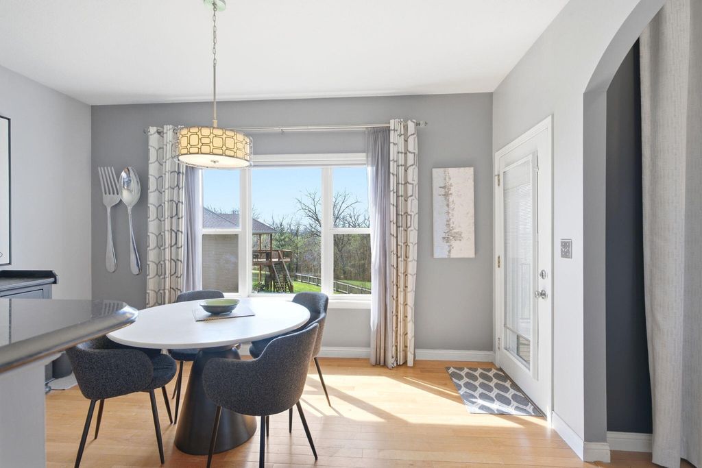 Space, style, and location all come together in this Westcliff home. Thoughtful details throughout include hardwood floors, granite countertops, a formal dining room, and oversized windows in the living room that bring in great natural light. Custom window treatments throughout the home will convey.The split bedroom design provides privacy, while the finished basement expands your living space with a theatre area complete with a projector and large screen, along with additional room to spread out. Recent updates include a new AC and water heater.Situated on a corner lot, this home features a side-entry three-car garage and eye-catching stonework on the exterior that adds to its curb appeal. Step outside to a composite deck with aluminum railings overlooking the backyard, creating a