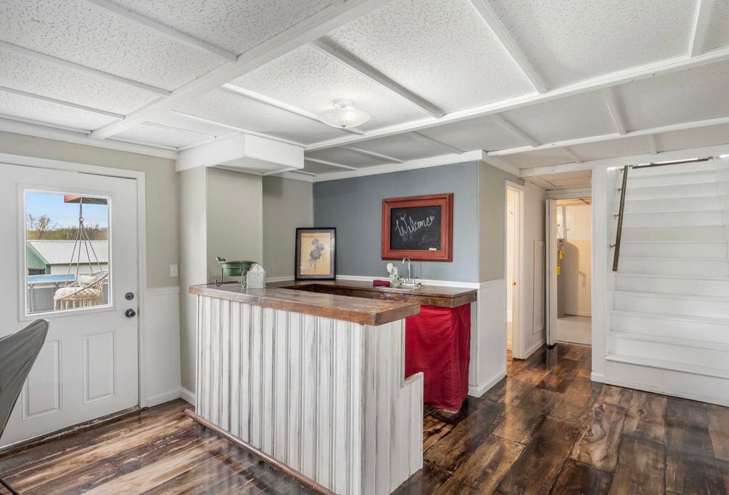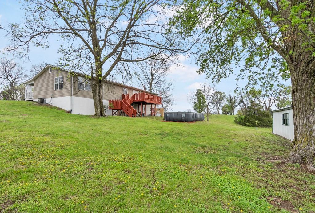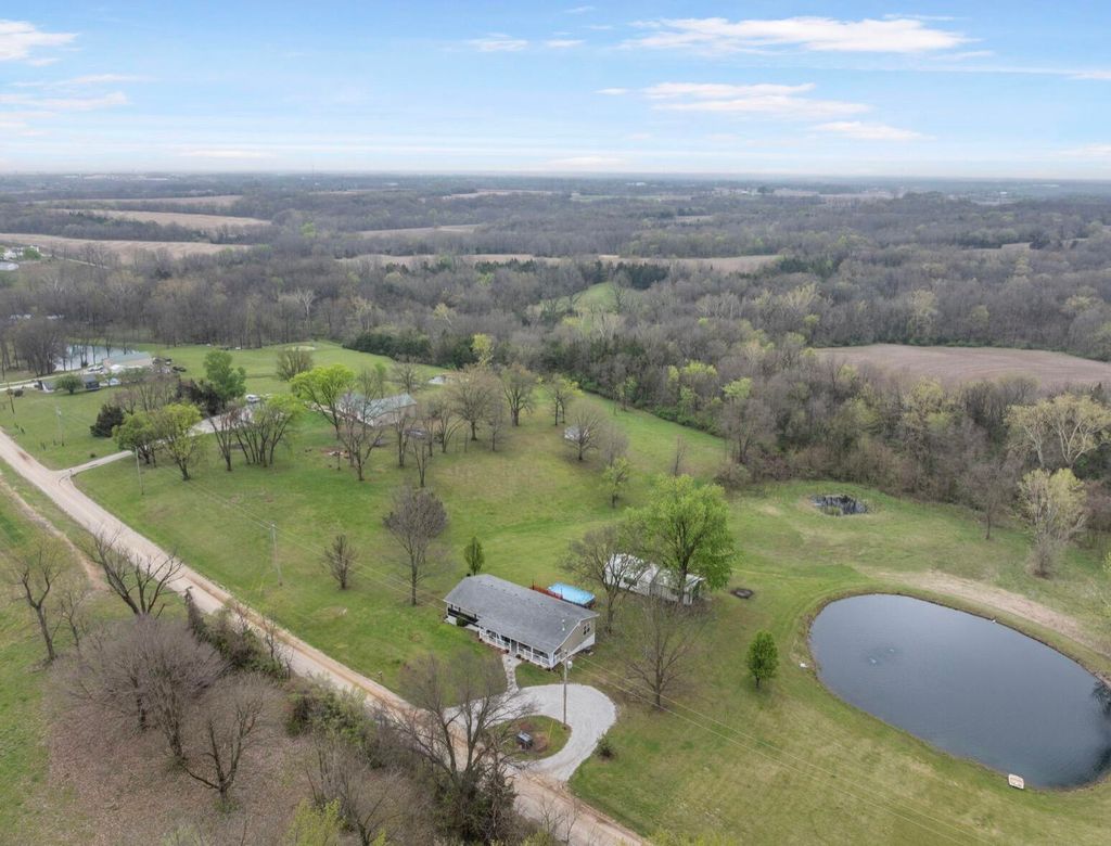 Welcome to your own private slice of country paradise! Nestled on 5 picturesque acres, this beautifully updated reversed ranch-style home offers the perfect blend of comfort and charm. Enjoy quiet country living with the convenience of town just minutes away. Step inside to discover a thoughtfully renovated interior featuring a new front door and flooring. Three bedrooms, plus one non-conforming, and a finished walkout basement provide plenty of living space. Outside, the property truly shines. Peaceful views from every angle, complete with mature fruit trees, a serene pond, and plenty of open space to roam. Relax and unwind in your own backyard featuring a deck, large above-ground pool and hot tub, perfect for summer gatherings. Two large versatile outbuildings for a garage or workshop.