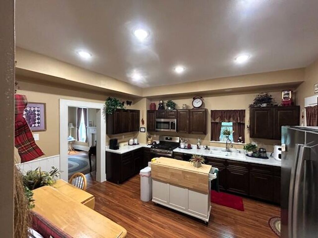 Beautifully updated, 1.5 story, century-old charmer, featuring 3 bedrooms, 1.5 baths (half bath plumbed for full), and enough space to configure many different layouts. Recent updates include wiring, plumbing, A/C, windows, flooring, and fresh paint. The new kitchen and baths pair modern style with classic charm. Main-level laundry adds convenience. Enjoy outdoor living on the screened-in back porch or covered front porch. A new, detached garage and additional outbuilding provide ample storage and workspace. Additional parking in rear and fenced back yard are an added bonus. Move-in ready with the perfect blend of history and modern comfort! Centrally located for convenience near schools and shopping.