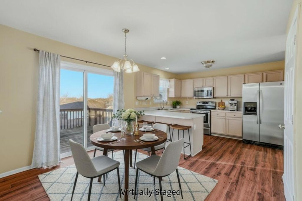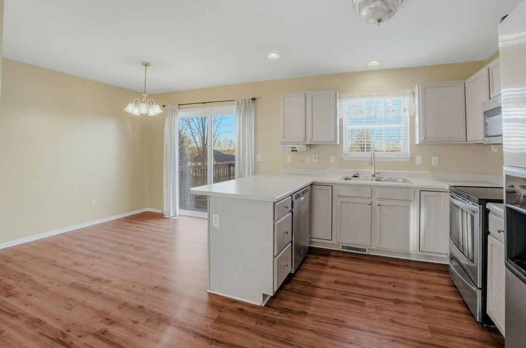 This two-story walkout in the popular Vanderveen neighborhood offers a highly functional floor plan with space where it actually matters. With four generously sized bedrooms located together on the second level, everyone can be close by at night, and the bedrooms themselves are larger than average with oversized closets. The main level is designed to spread out, featuring a formal dining room, large kitchen, spacious living room, half bath, and a dedicated laundry room with natural light.The walkout lower level adds valuable flexibility with a fifth bedroom, a third full bathroom, a family room with walkout access to the backyard, and additional unfinished space ideal for storage, hobbies, or a workshop. Recent updates include a brand-new roof, and an HVAC system replaced just two