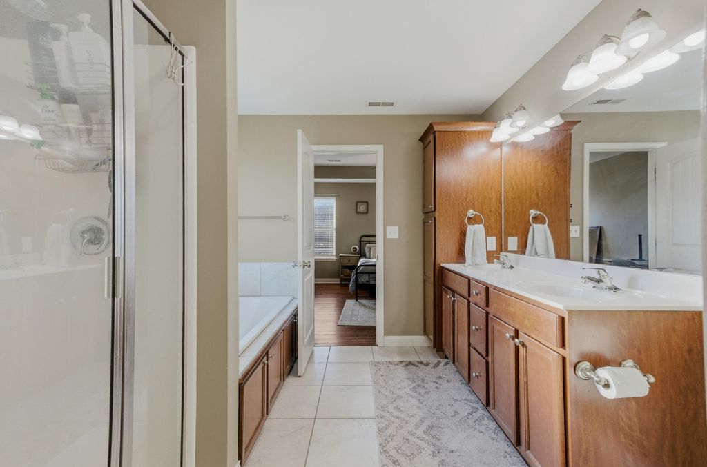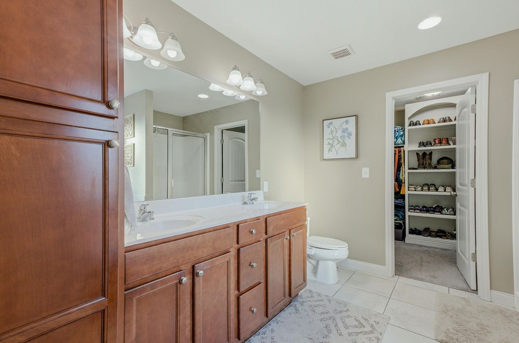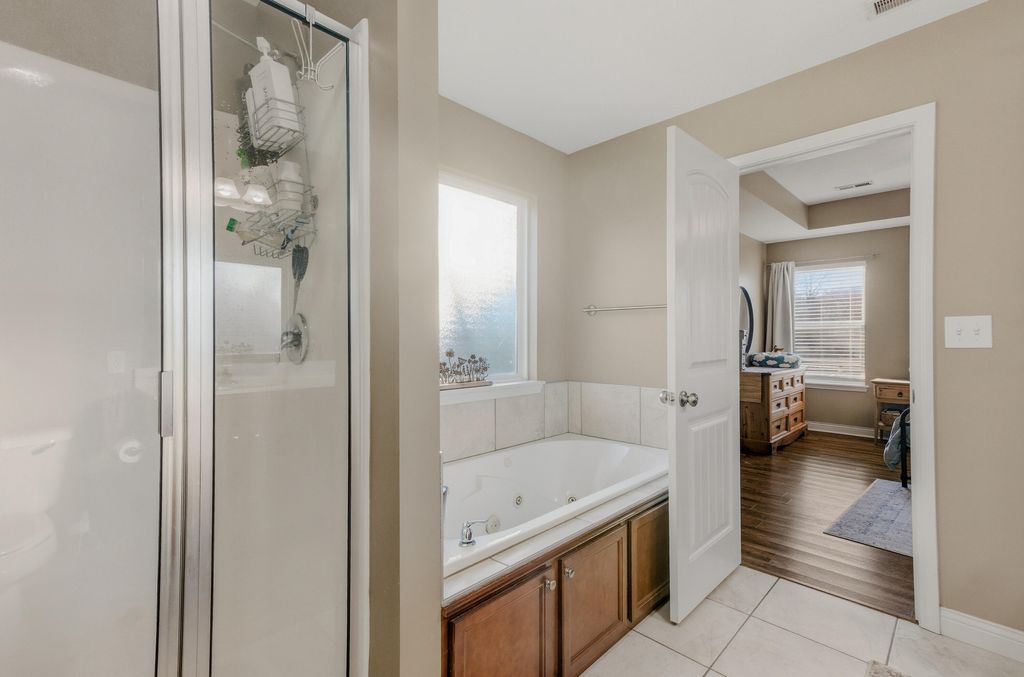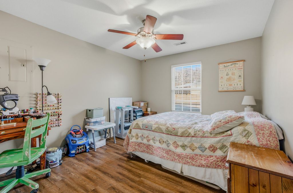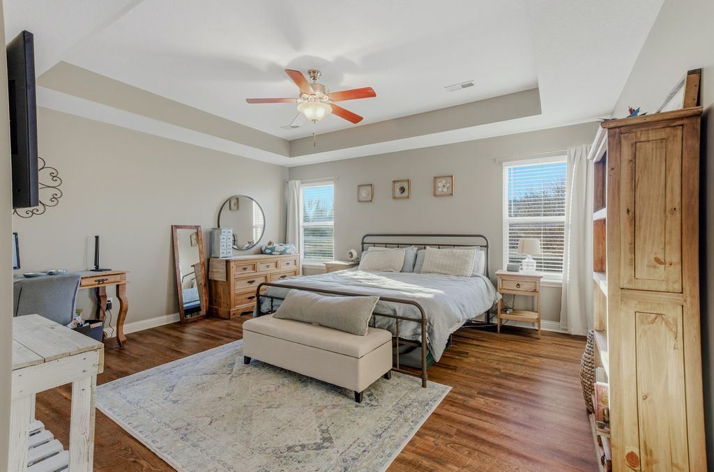 This 3-bedroom, 2-bath home in the Vanderveen neighborhood features an open layout and split-bedroom floor plan giving you space and privacy. The kitchen features a farmhouse-style sink with a window looking out to the yard, a convenient pantry, and a spacious island with room for additional seating.The spacious primary suite a large walk-in closet with built-ins, a walk-in shower, and a large jetted tub for relaxing evenings. The second bedroom also includes built-in storage, making organization easy throughout the home.The oversized laundry and utility room is directly off the garage, making it the perfect drop zone for shoes, backpacks, and groceries. With plenty of storage and a utility sink, it's functional for laundry day, pets, or household projects.You'll love the